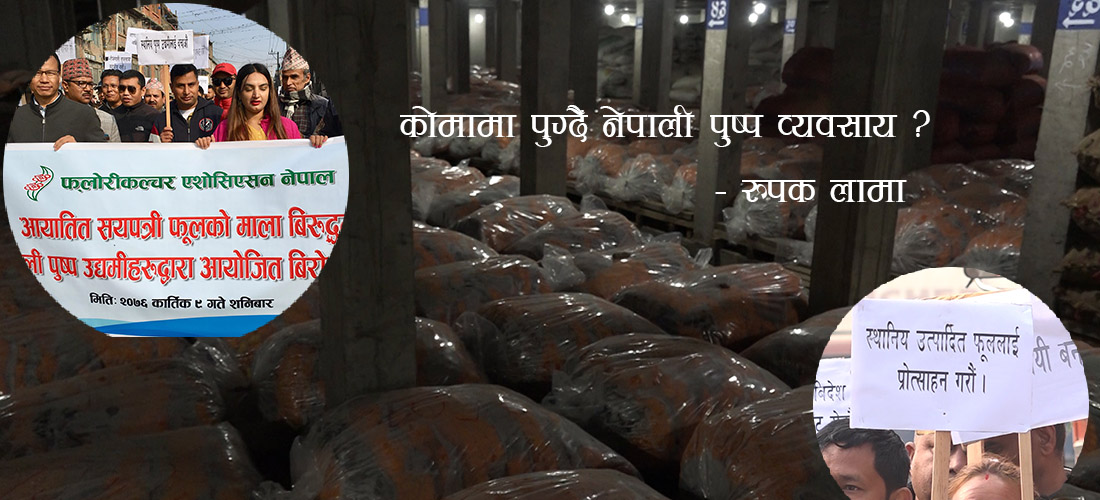 नेपाली फूल बजारमा नआउँदैं कालिमाटी बजारका एक व्यवसायीको नेतृत्वमा भैरहवा नाका हुँदैं तिहारको एक हप्ता अघिनै ठूलो परिमाणमा भित्रिएको भारतीय सयपत्री फूलको माला काठमाडमौं खुलेआम बिक्रि भैरहेको छ । जसको सूचना सरकारी निकाएमा पुष्प व्यवसयीले बजारमा माला आउनु अघिनै पु¥याएका थिए । उत्पादन गरेर बजार लैजाने बेला भारतीय उत्पादनको प्रवेश गराएर नेपाली बजार कब्जा गर्ने प्रवितिले नेपाली किसान, व्यवसायीले कति दिन थेग्न, टिक्न सक्लान यो भने सोच्नै पर्ला ?