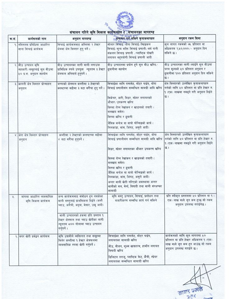 २. बीउ उत्पादन सहकारी- समूहलाई मूल बीउमा ५० प्रतिशत अनुदान