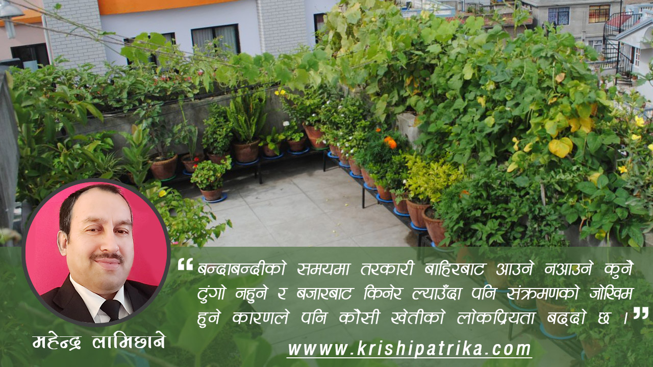 साथै सरकारले घरघरमा कम्पोस्ट बिन र उन्नत बिउको ब्यवस्था गरी कोभिड-१९ पछिको समयमा पनि शहरी कौसी खेतीलाइ प्रोत्साहन दिनु पर्दछ।