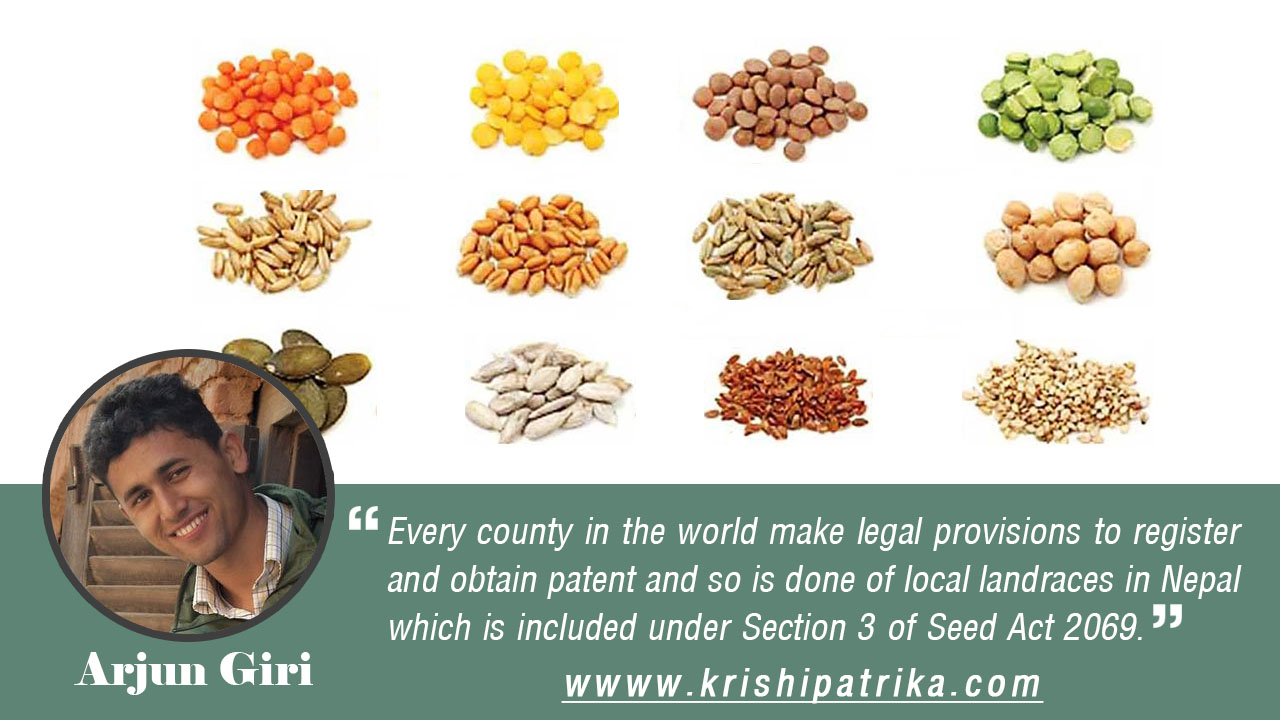 Legal Provisions means any federal, state, local or foreign statute, law, regulation, judgment, order or decree of any Governmental Entity. It helps to safeguard your invention and protect any product, design or process that meets certain specifications according to its originality, practicality, suitability, and utility. Every county in the world make Legal provision to register and obtain patent and so is done of local landraces in Nepal which is included under Section 3 of Seed Act 2069.