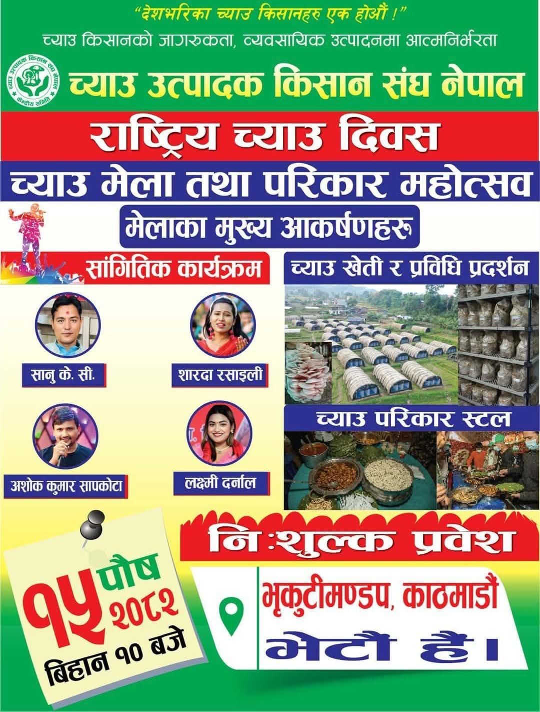 च्याउ दिवसका अवसरमा देशभर तथा केन्द्रीय रूपमा भृकुटीमण्डप, काठमाडौँमा विभिन्न सचेतनामूलक कार्यक्रम, छलफल, प्रदर्शनी तथा अन्तर्क्रिया कार्यक्रमहरू आयोजना गरिने संघले जनाएको छ।
